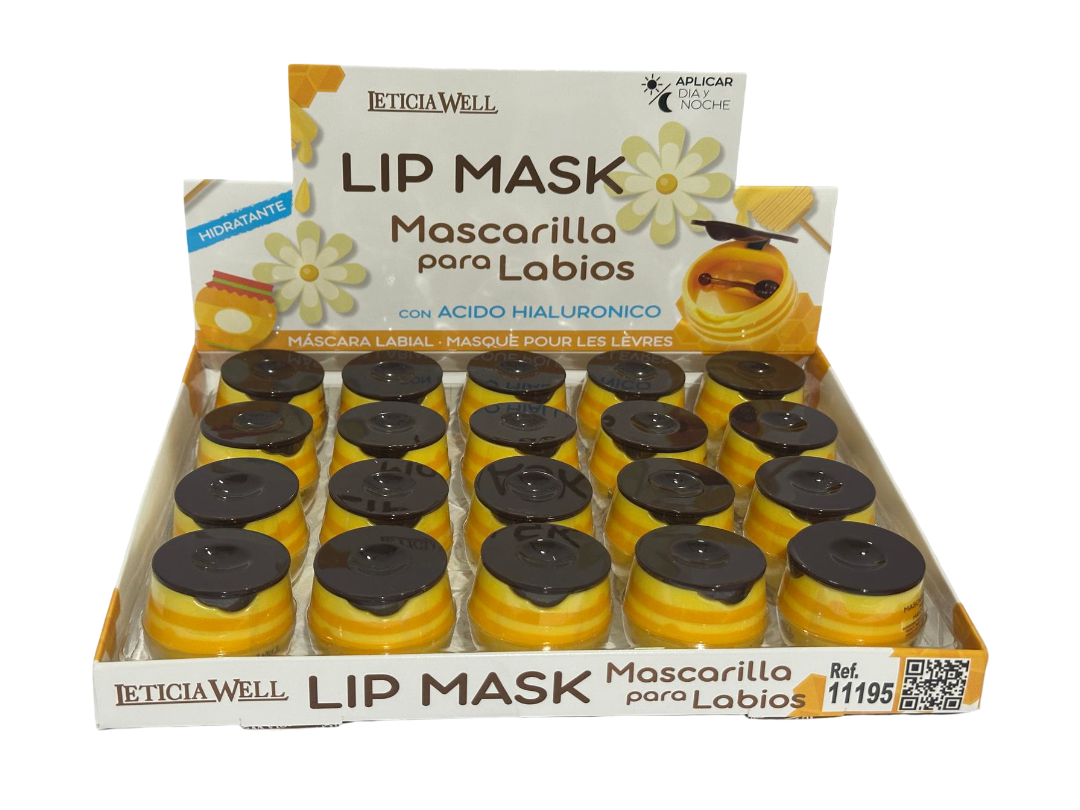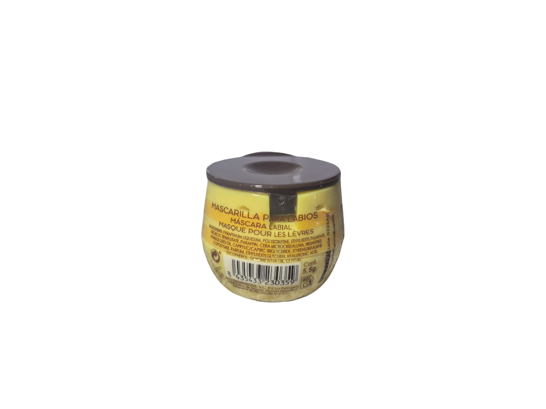Es una mascarilla para labios que combina extracto de miel y ácido hialurónico en un formato divertido y práctico tipo tarrito, acompañado de un mini-aplicador en forma de palito de miel para una aplicación limpia y precisa.